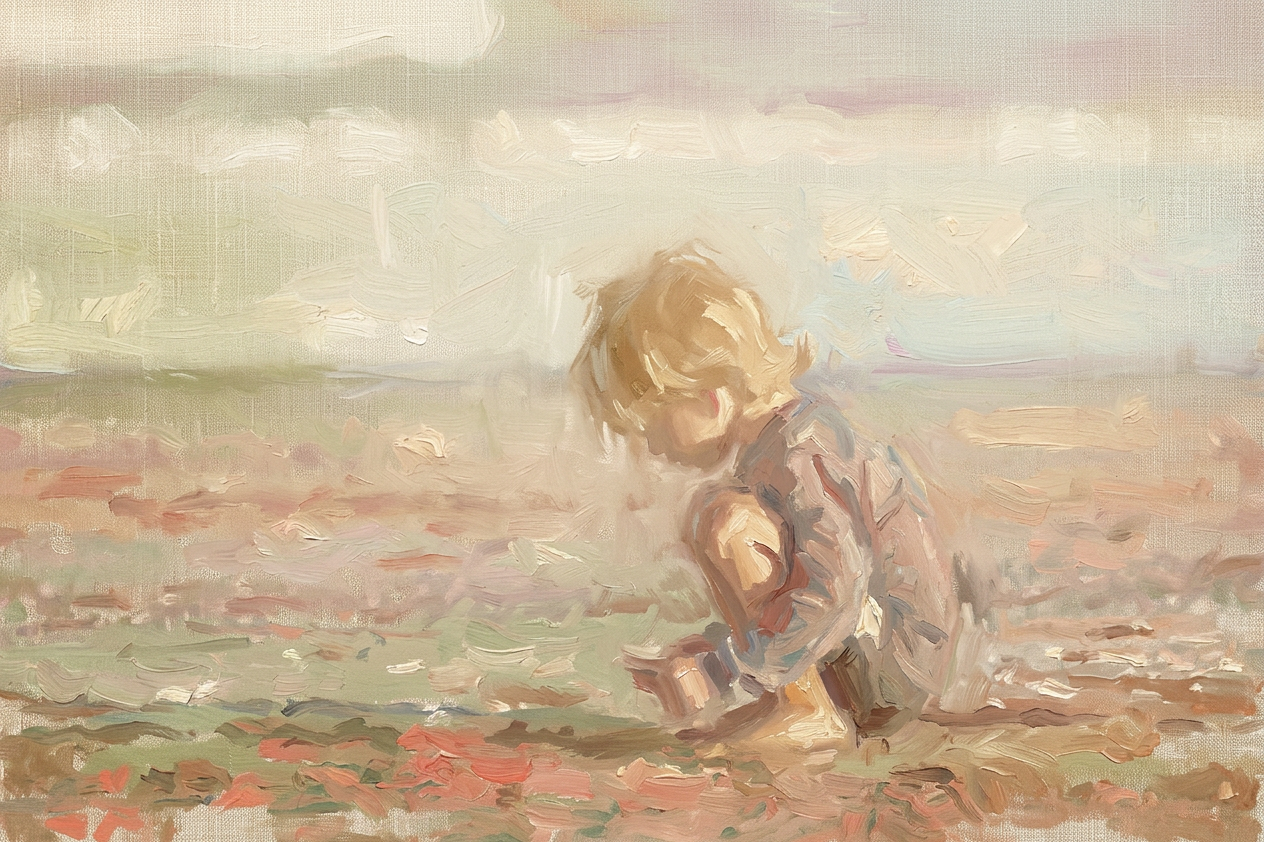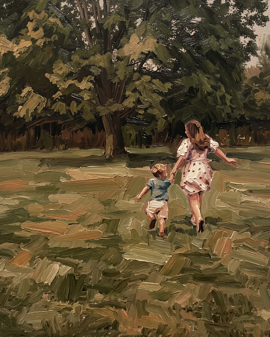 Garden scenes, children in nature, anything with greenery or flowers. Also unexpectedly beautiful for simple portraits where you want a timeless, heirloom quality — the faded warmth gives paintings the feeling of having always existed.
